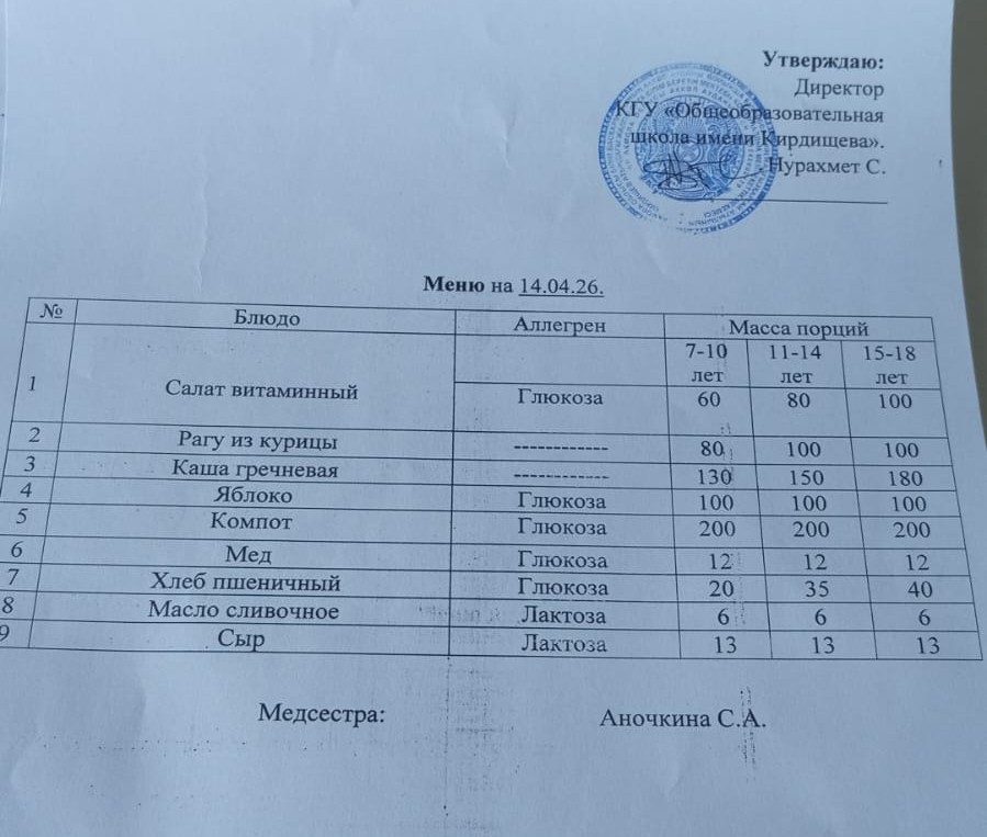 Ас мәзірі 14.04.2026