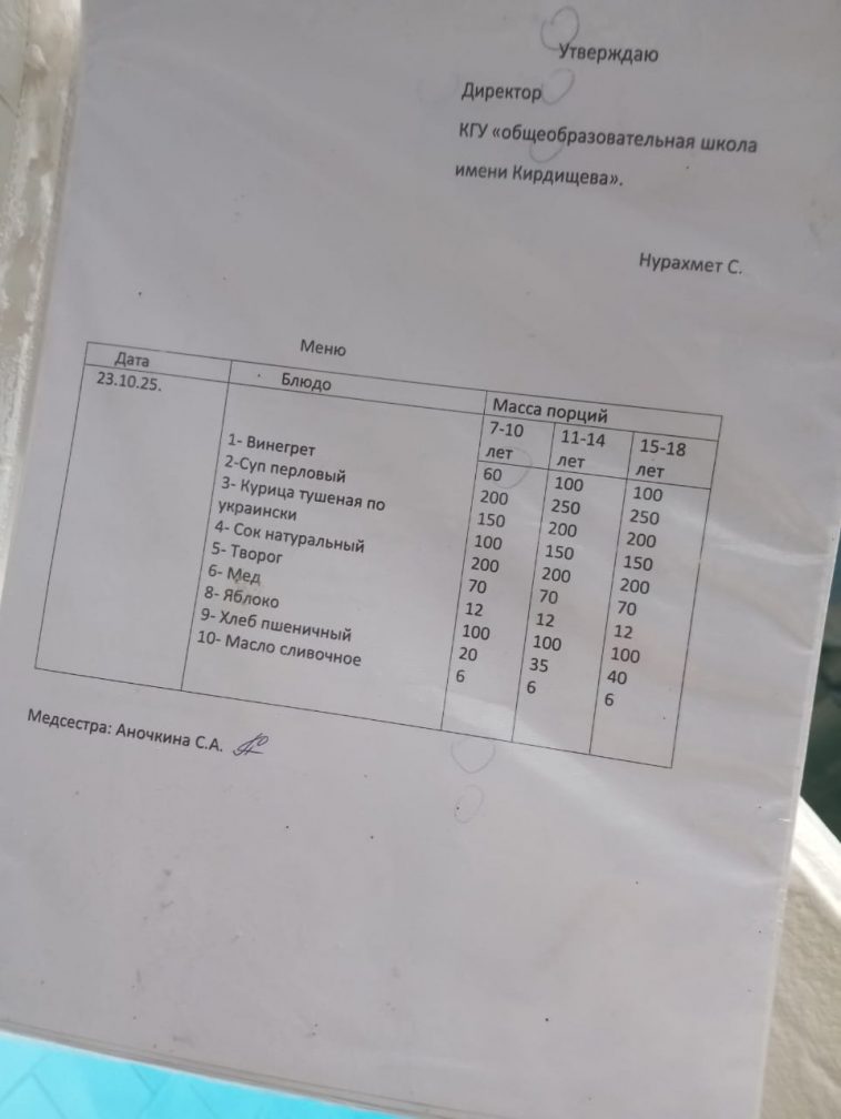 Ас мәзірі 23.10.2025